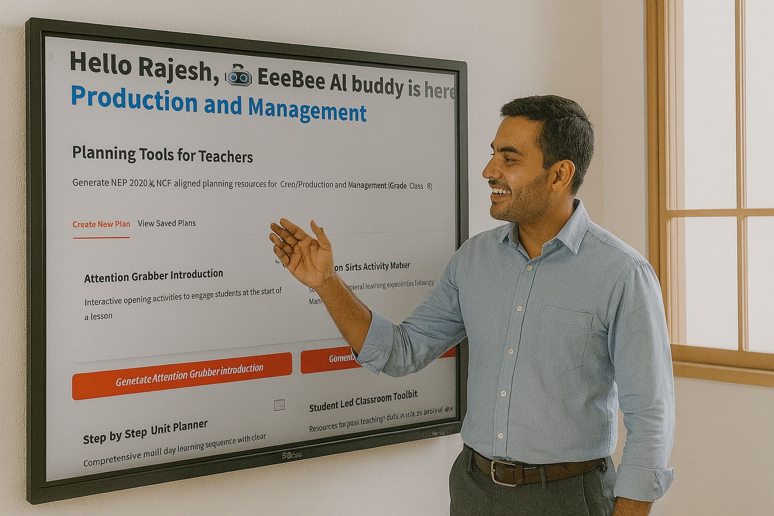 A structured workflow for AI Slate. This guide provides a step-by-step example of how a teacher uses the Edubull AI Slate to plan, deliver, and follow up on a lesson.